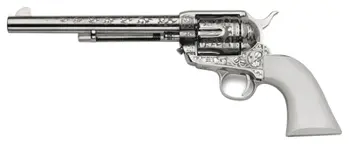 Cimarron Teddy Roosevelt .45 Long Colt Revolver With 7.5" Engraved Barrel, 6-round Capacity, Nickel Frame Finish 844234130009 PP415LNTR