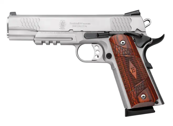 Smith & Wesson 108411 1911 E Series 45 ACP 5" 8+1 Stainless Steel Laminate Wood Grip with Rail