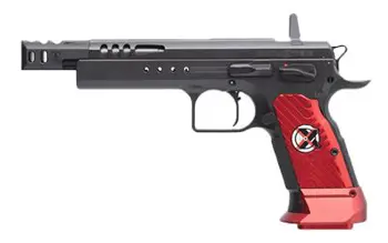 Tanfoglio Domina Xtreme Semi-automatic Pistol 9mm 5.2" Barrel Black Finish Red Aluminum Grips Ambidextrous Safety 19 Round Capacity 8051770131304