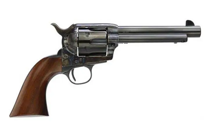Buy NowTaylors & Company 550897 1873 Cattleman SAO 45 Colt (LC) Caliber with 5.50" Blued Finish Barrel, 6rd Capacity Blued Finish Cylinder, Color Case Hardened Finish Steel Frame & Walnut Grip